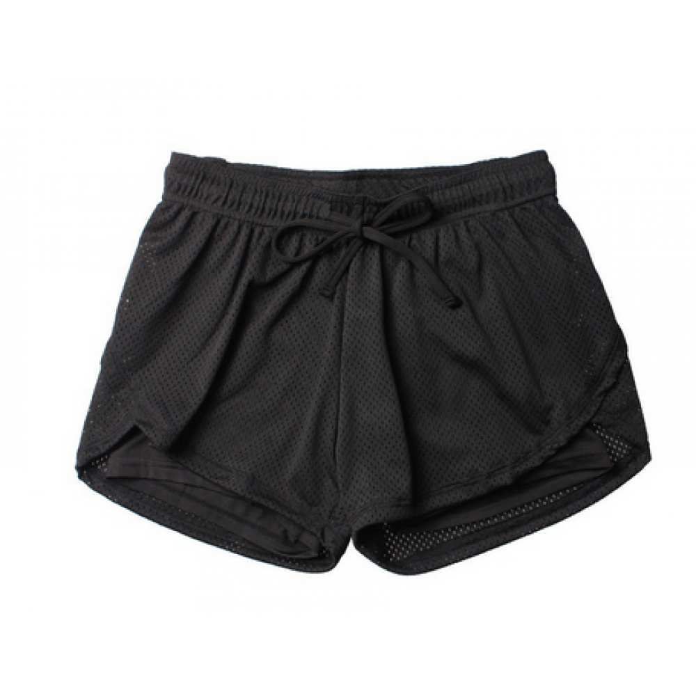 Women Mesh Patchwork Sports Running Shorts 2 In 1 Yoga Workout Fitness Breathable Quick Dry Double Layer Short Pants